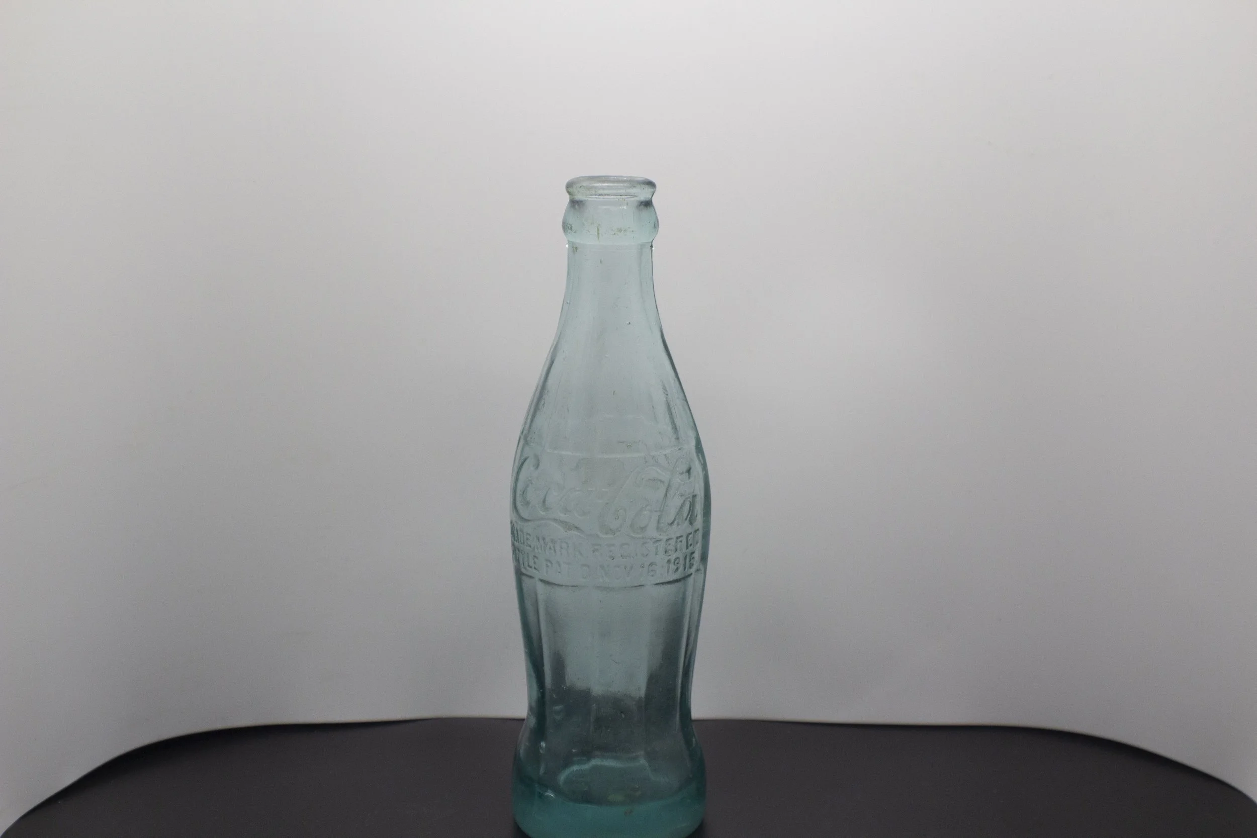 Age - 1917-1928 Type - Machine Front - Coca-Cola / TRADE MARK REGISTERED / BOTTLE PAT’D.NOV.16,1915 Back - Coca-Cola / TRADE MARK REGISTERED / MIN.CONTENTS 6-FL.OZS. Bottom - AIKEN/ S.C. Rarity - Rare