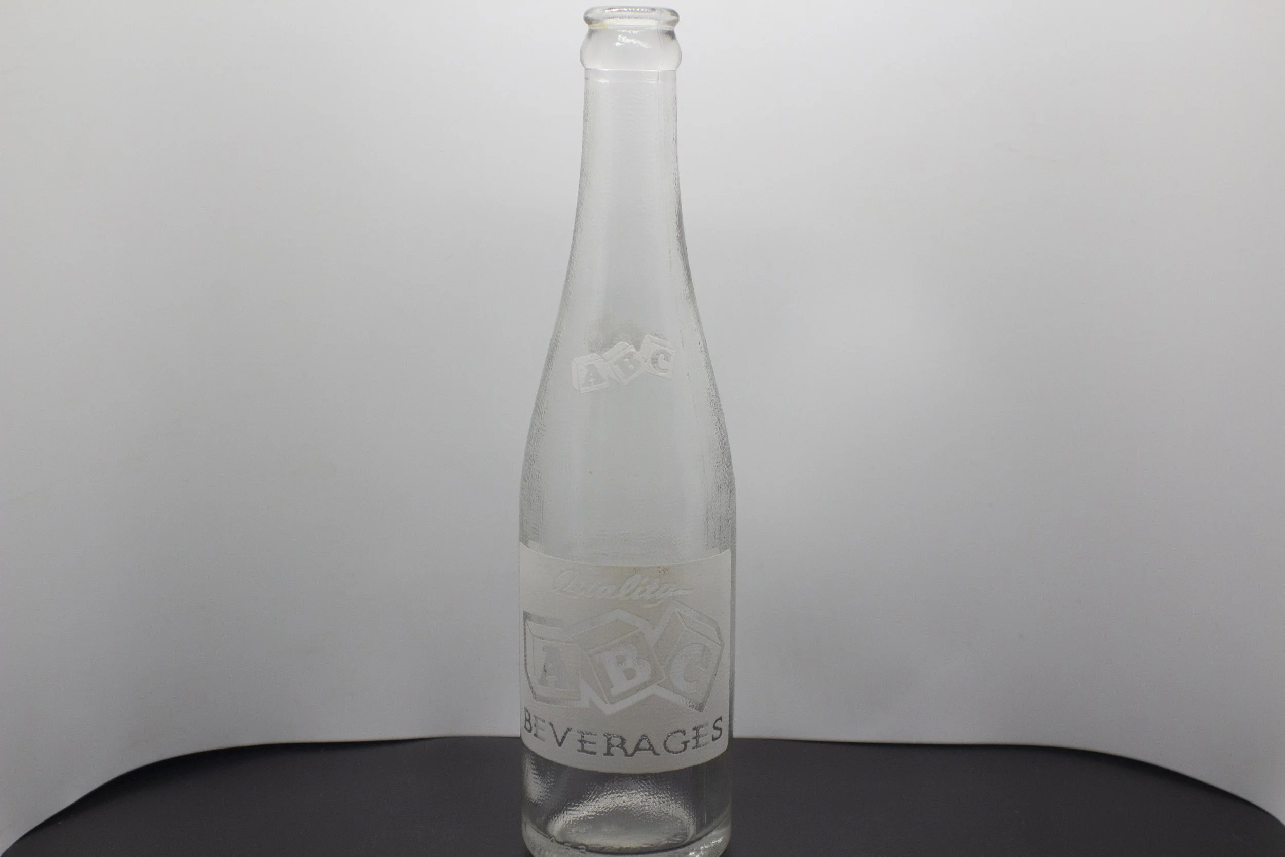 Age - 1945 Type - Machine Front - (shoulder) ABC (body) Quality / ABC / BEVERAGES Base - (embossed) 275 7 Back - (shoulder) ABC (body) CONTENTS 7 FLU. OZS. / AIKEN BEVERAGE CO. / AIKEN, S. C. Base - (embossed) 4LGW6 Rarity - Rare