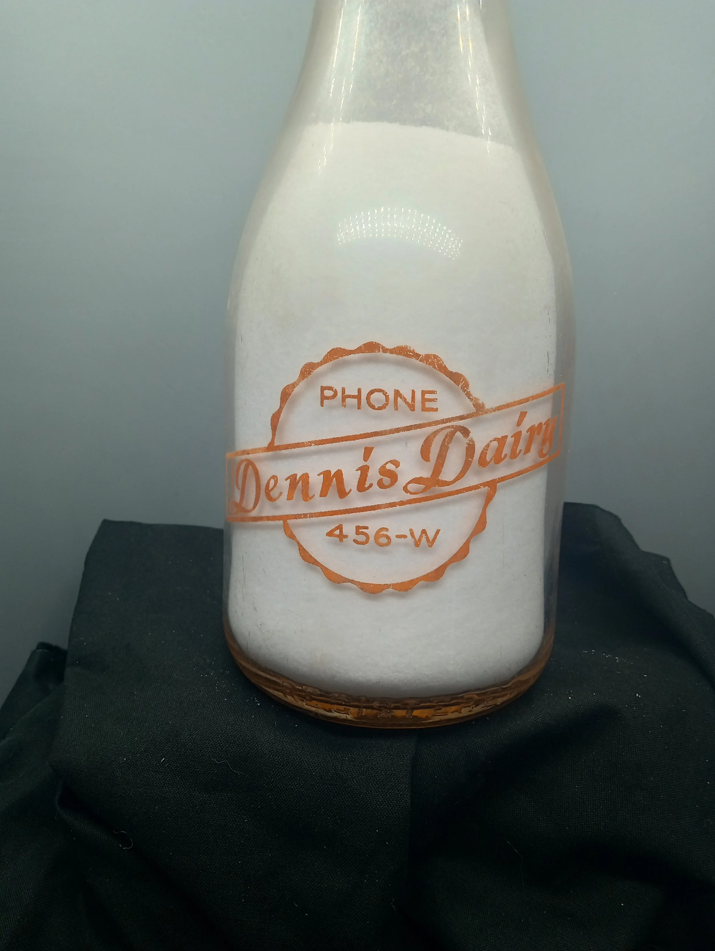 (neck)A BOTTLE OF MILK IS A BOTTLE OF HEALTH DENNIS / DAIRY / GRADE - A / MILK (embossed at base) REGISTERED - BACK - THE BEST IN MILK / FROM FARM TO YOU / DENNIS / DAIRY /PHONE / 456 W (embossed at base) 1 QT. LIQUID LIQUID
